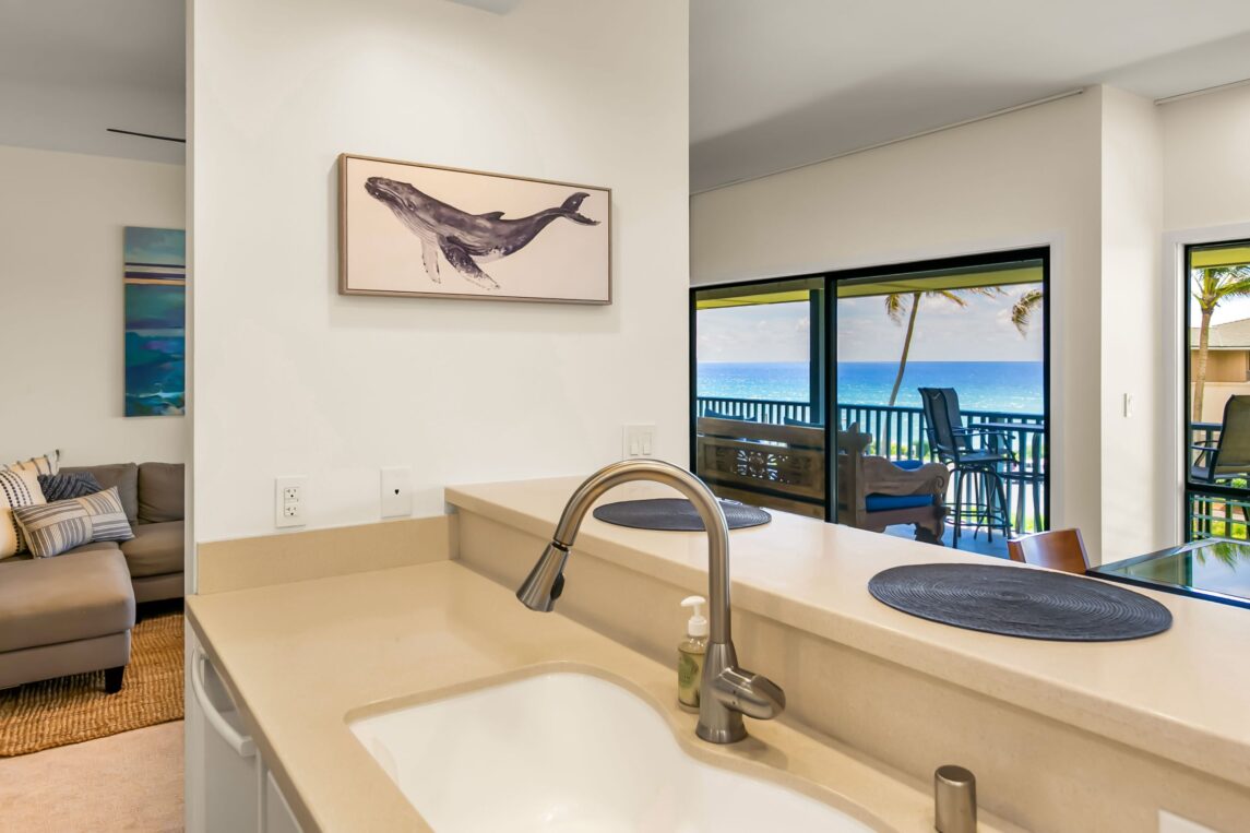Poipu Sands 437 is a spacious, updated condo with a large lanai with an expansive ocean view, perfect for watching turtles, dolphins and whales (in season). Mahalo!